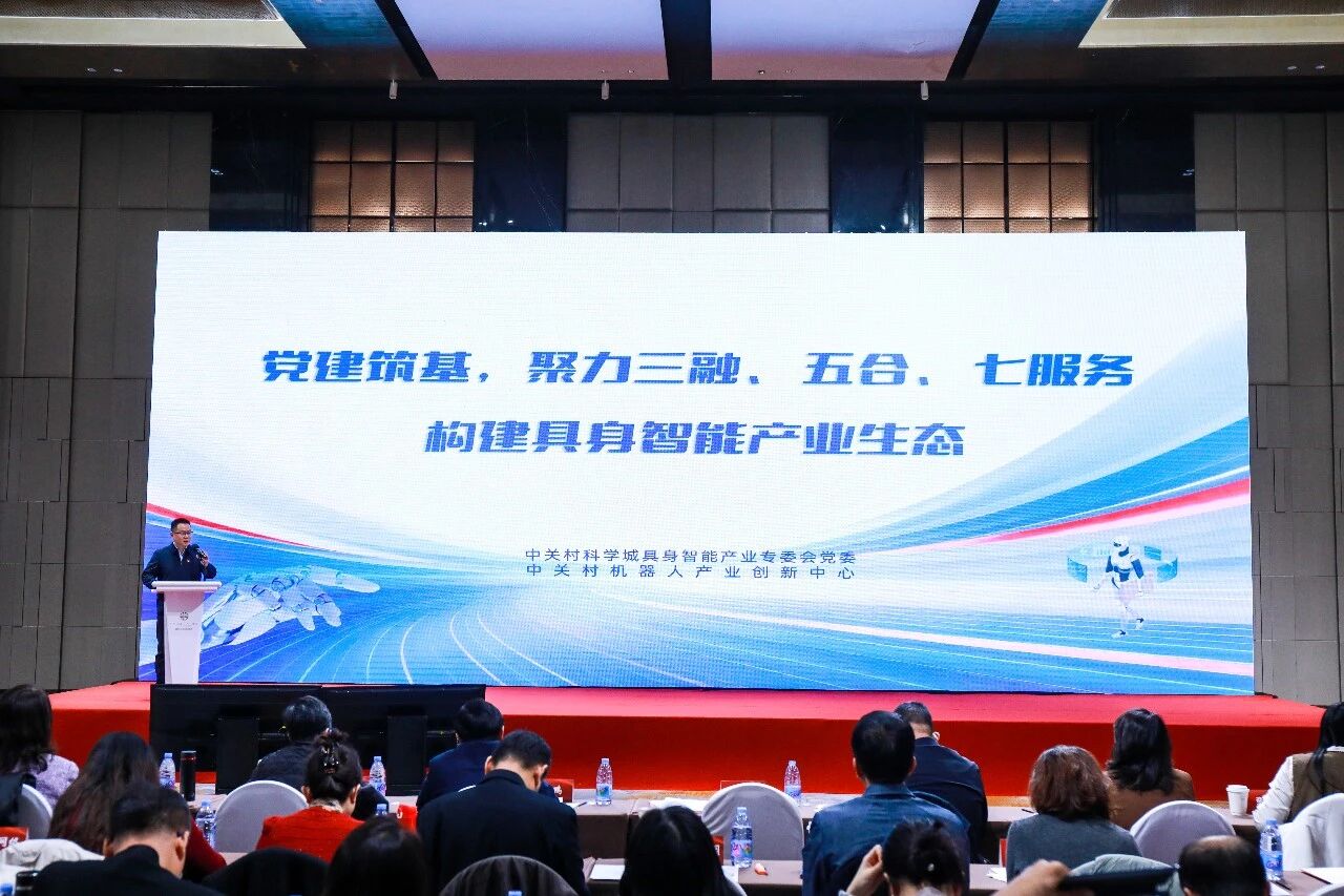 作为中关村科学城具身智能产业专委会主任单位,中关村机器人产业创新发展有限公司董事长牟宏磊在中关村科学城党建协同促发展大会上代表专委会作年度工作汇报,全面展示自2024年11月成立以来,在党建引领下推动具身智能生态建设、技术攻关与场景落地的阶段性成果,获得主管部门高度肯定。