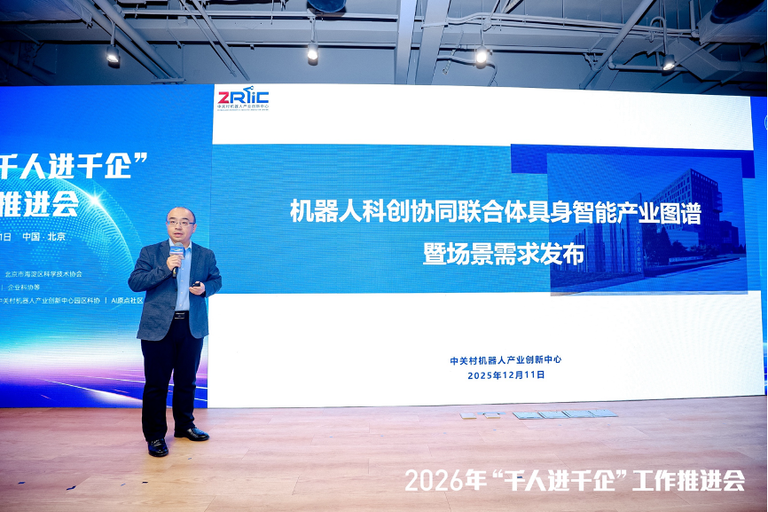 在2026年北京市科协“千人进千企”工作推进会上,创新中心总经理蒙洋代表机器人科创协同联合体,正式发布《具身智能产业图谱暨场景需求》,系统梳理产业链关键环节与落地机会,为生态伙伴提供清晰导航。