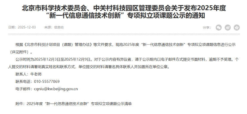 入选中关村科学城2025年关键核心技术“揭榜挂帅”专项、海淀区“支持高质量孵化器”专项;